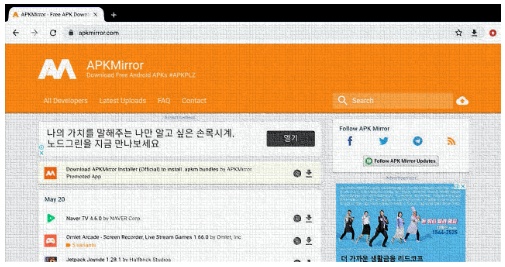 그렇기 때문에 되도록이면 공신력이 있는 곳에서 다운로드 하시는 것이 좋습니다 apk pure 그리고 apk mirror 라는 것이 그나마 공신력이 있는것 같아요. 사실 개인적으로는 이곳도 못믿겠어요.