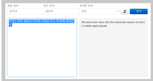 일반적으로 한글을 일본어로 바꾸는 것은 굉장히 매끄럽습니다. 그리고 일본어를 영어로 바꾸는것역시 굉장히 잘되어 있습니다. 그렇기 때문에 한글을 막바로 영어로 번역을 하는것보다는 훨씬 더 나은 번역을 보여 줍니다.