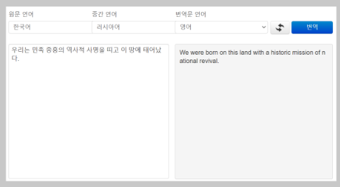 번역이 이상하다고 생각하시면 중간 언어를 러시아어로 변경을 한 다음에 이용을 해보시는것도 괜찮습니다. 어쩌면 이게 훨씬더 좋은결과를 얻기도 합니다.