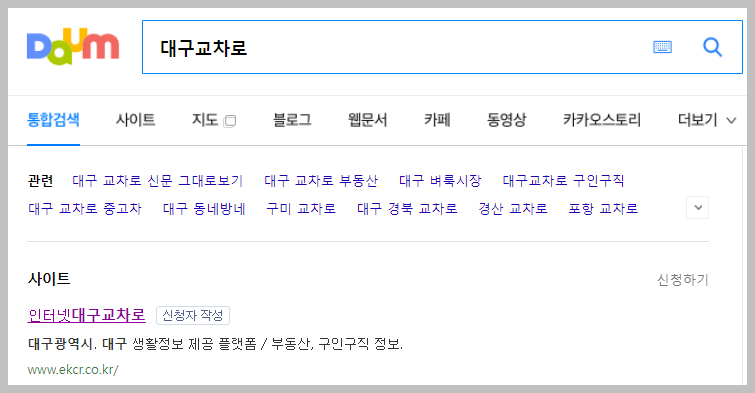 간단하게 '대구 교차로'라고 검색을 하시면 쉽게 원하는 사이트로 들어가실 수 있습니다. 이러한 방문방법은 다음 뿐만아니라 네이버를 통해서도 이용이 가능합니다.