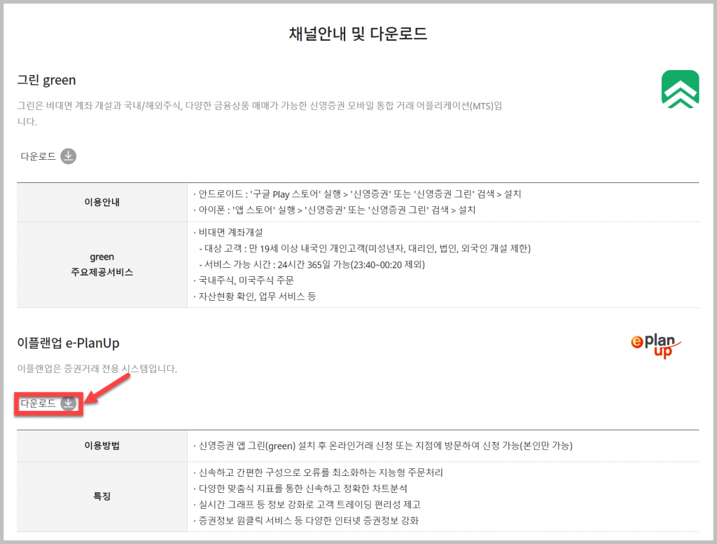 오늘 소개할 e-PlanUp은 다양한 공모주를 취급하는 만큼 사용자가 많습니다. 이 HTS를 다운로드하려면 회사 홈페이지에서 진행할 수 있으며, 사용하기 위해서는 지점에 방문하여 HTS 약정신청을 해야 합니다.