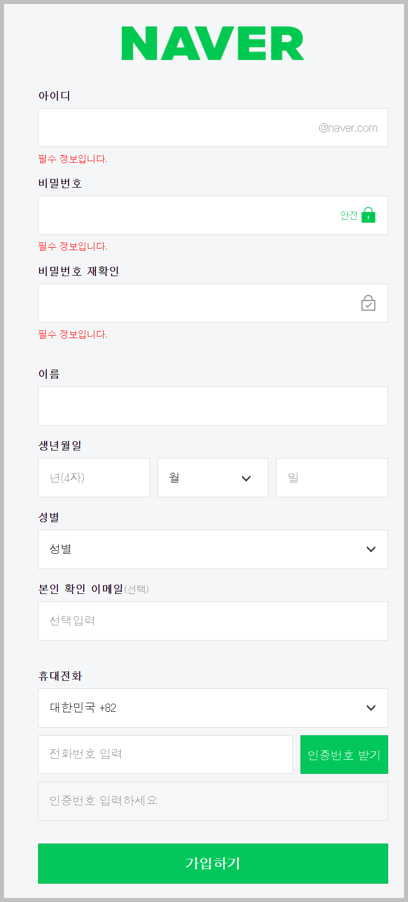 네이버 이메일은 네이버 홈페이지에서 만들 수 있습니다. 이는 당연한 것입니다.