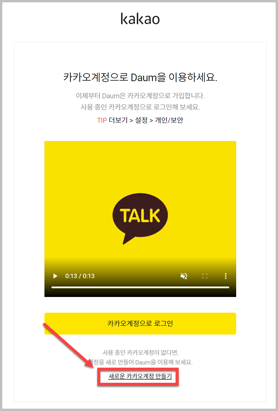 간단하게 위 링크를 클릭을 하시면 다음 홈페이지로 들어가실 수 있씁니다. 그리고 우측에 있는 '회원가입'을 클릭을 하시면 다음에 가입을 할수 있습니다. 이때 누구나 있는 카카오 계정을 통해서 회원가입을 할 수 있습니다. 만약 카카오 계정이 없는 사람은 '새로운 카카오계정 만들기'라는 것을 클릭을 하시면 이메일을 쉽게 만들 수 있습니다.