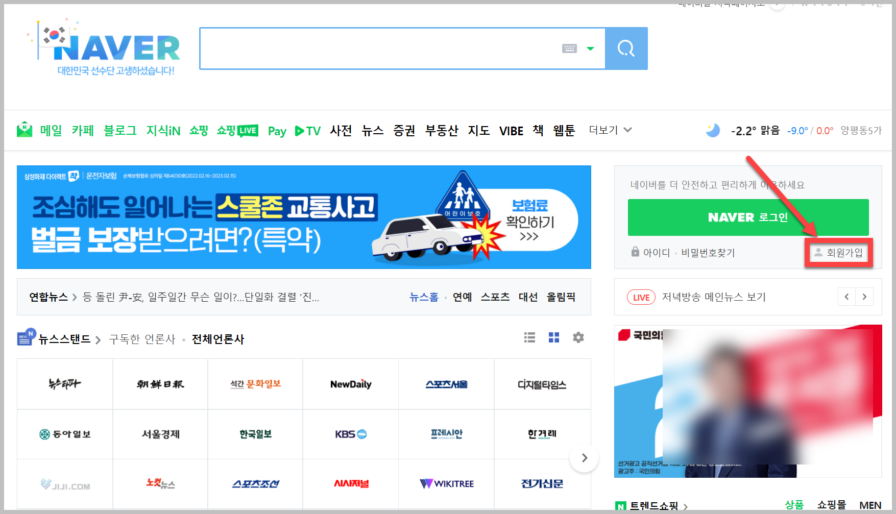 우측 보면 '회원가입'이라고 되어 있습니다. 이것을 클릭을 하시면 회원가입을 할 수 있씁니다.