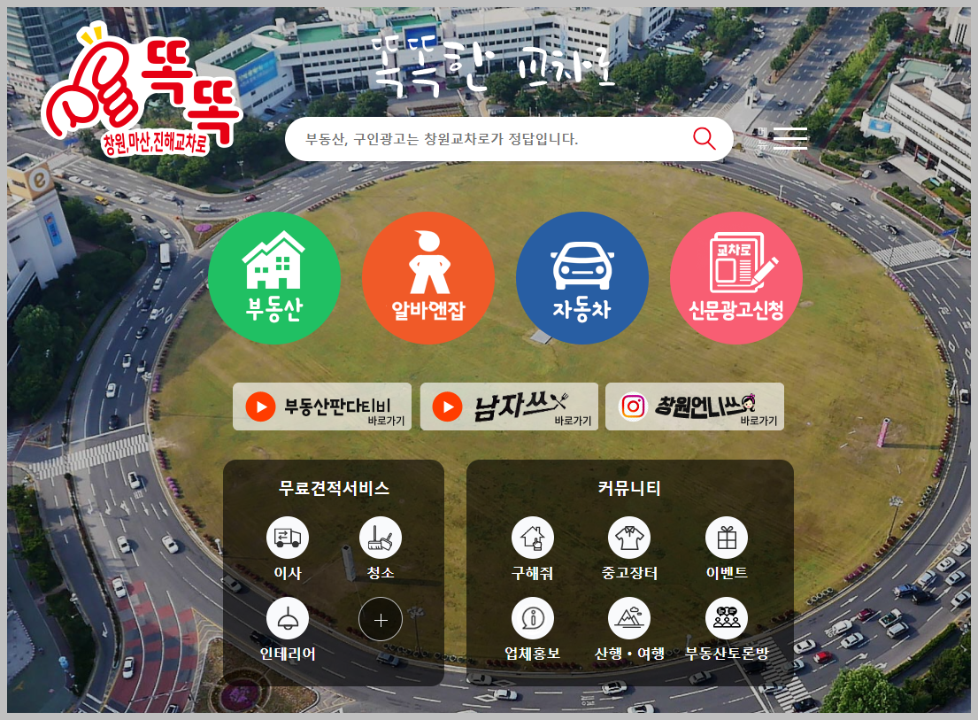 위 링크를 클릭을 하시면 간단하게 창원교차로 홈페이지에 방문할 수 있습니다. 어떤 방법을 사용해도 산관은 없습니다.