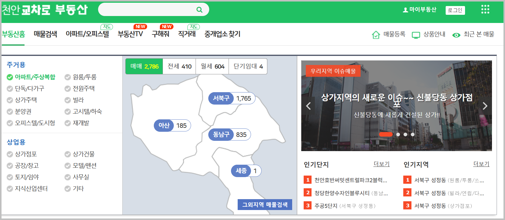 특히 최근에는 산과 천안을 함께 다루는 통합 플랫폼 형태로 운영되고 있어, 두 지역 모두를 고려하는 분들에게는 더욱 편리한 구조입니다.