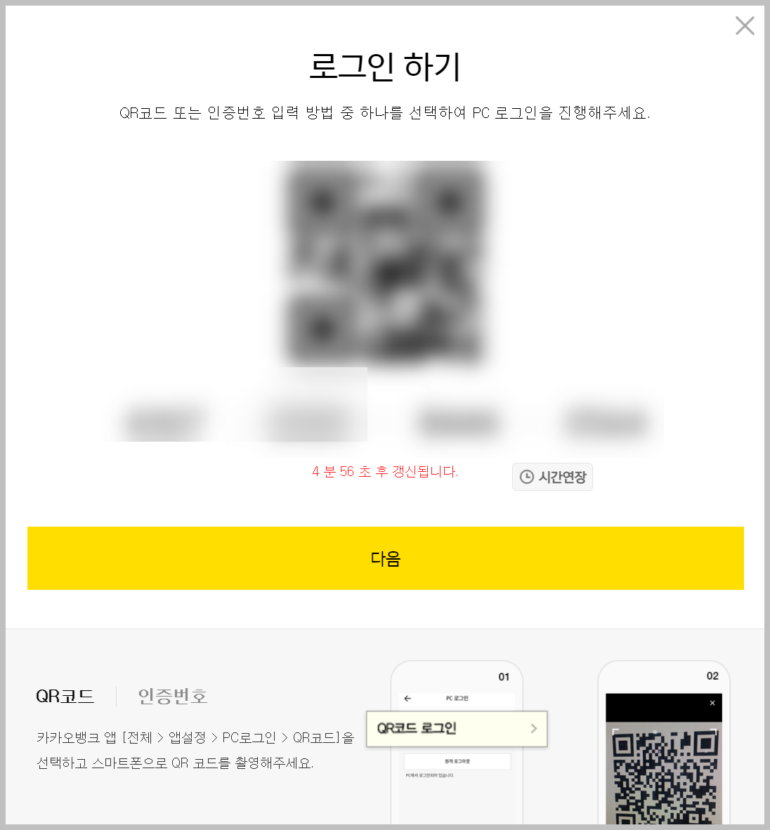 카카오 뱅크 PC 로그인