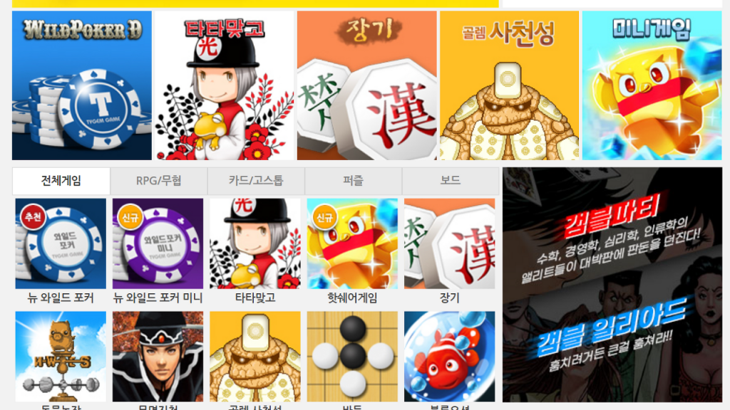 Tygem에는 '타타맞고'도 즐길만한 서비스 중 하나로, 이 프로그램을 즐기는 사람들도 꽤 있는 것 같습니다.또한, 타이젬 홈페이지에서는 만화도 볼 수 있는 등 추가적인 콘텐츠를 제공하고 있습니다. 개인적으로 장기나 포커를 두기위해 자주 방문해서 즐기고 있습니다.