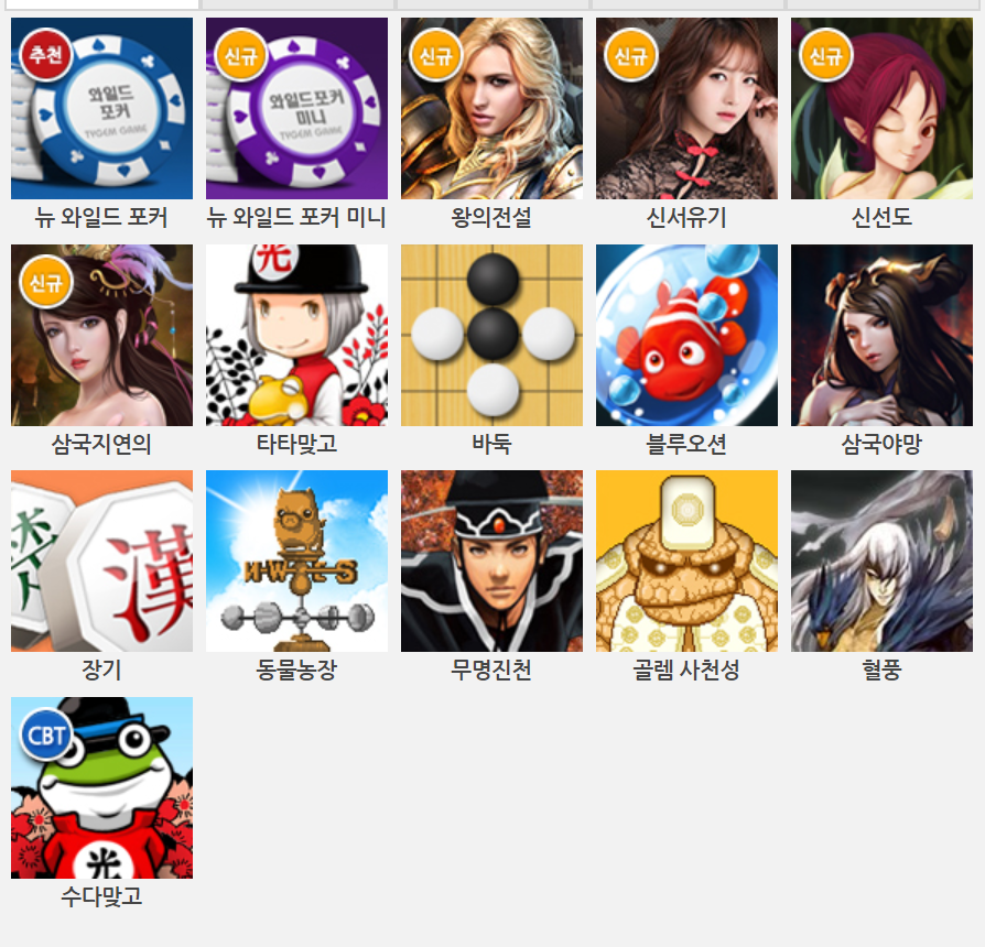 현재 타이젬게임에서는 총 16개의 게임을 서비스하고 있으며, 이 중에서 바둑이 가장 유명하다고 할 수 있습니다. 프로수준의 기사들도 종종 볼 수 있기 때문이죠, 반면 다른 게임들은 그저 운영되고 있는 수준입니다. 새로운 게임은 자주 출시되지 않으며, 가장 최근에 출시된 프로그램은 '핫쉐어'입니다.
