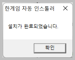 한게임 스타터 설치는 굉장히 빠르게 끝납니다. 눈깜짝할 사이에 종료가 되기 떄문에 오래걸리는 사람은 뭔가 문제가 있는것입니다.
