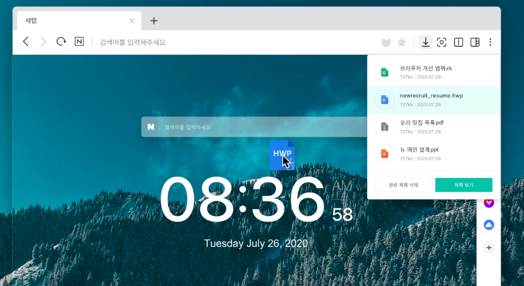 - 네이버 웨일을 실행하고, 편집하고자 하는 한글 파일을 브라우저에 드래그 앤 드롭합니다.