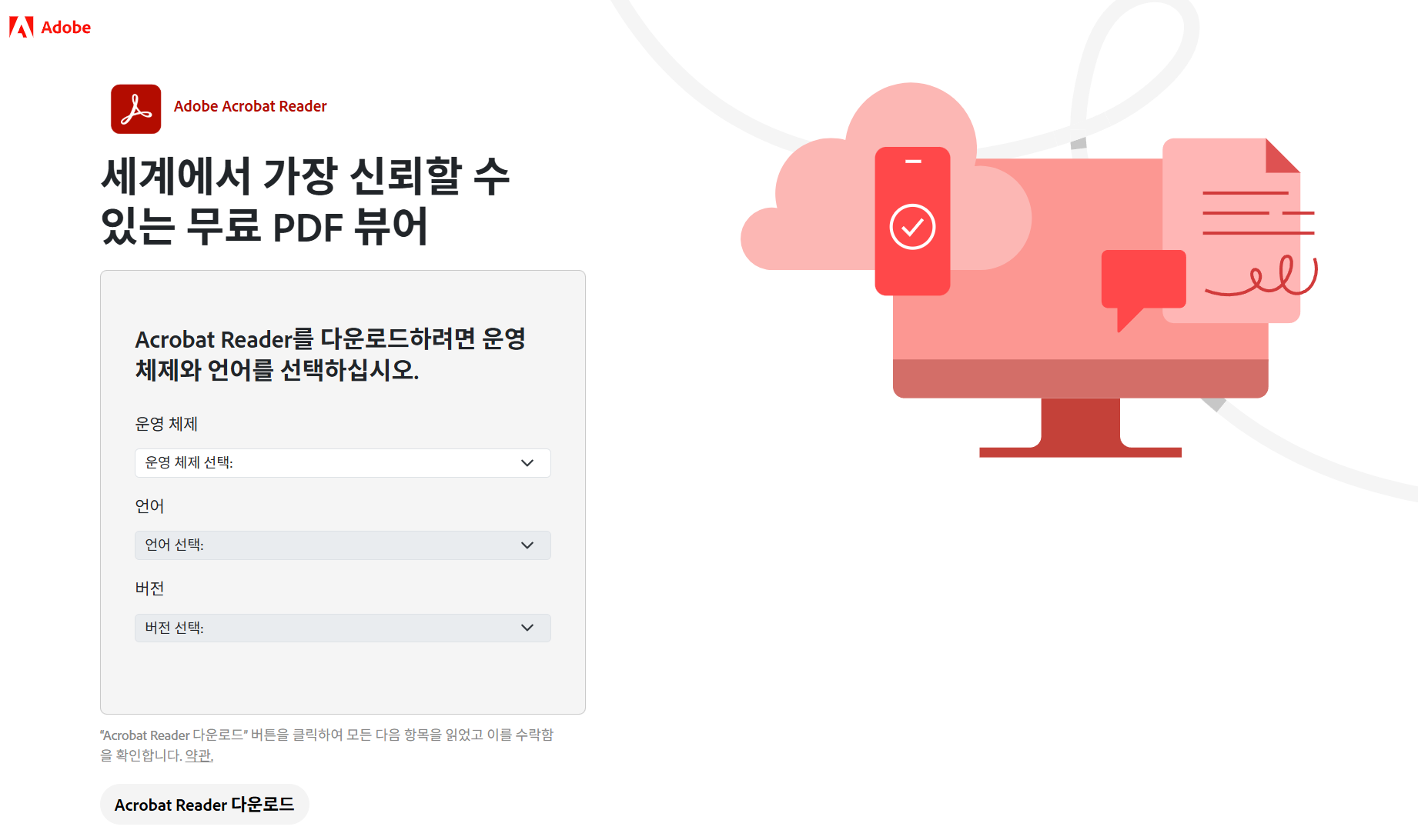 Adobe Acrobat Reader를 설치하려면 공식 사이트에서 설치 파일을 내려받는 것이 가장 안전합니다. 다운로드 페이지에 들어가면 운영체제를 선택하는 메뉴가 먼저 나타납니다. 윈도우뿐 아니라 맥OS나 모바일 운영체제에서도 사용할 수 있도록 여러 버전이 제공되고 있습니다. 자신의 컴퓨터 환경에 맞는 버전을 선택한 뒤 다운로드를 진행하면 됩니다.