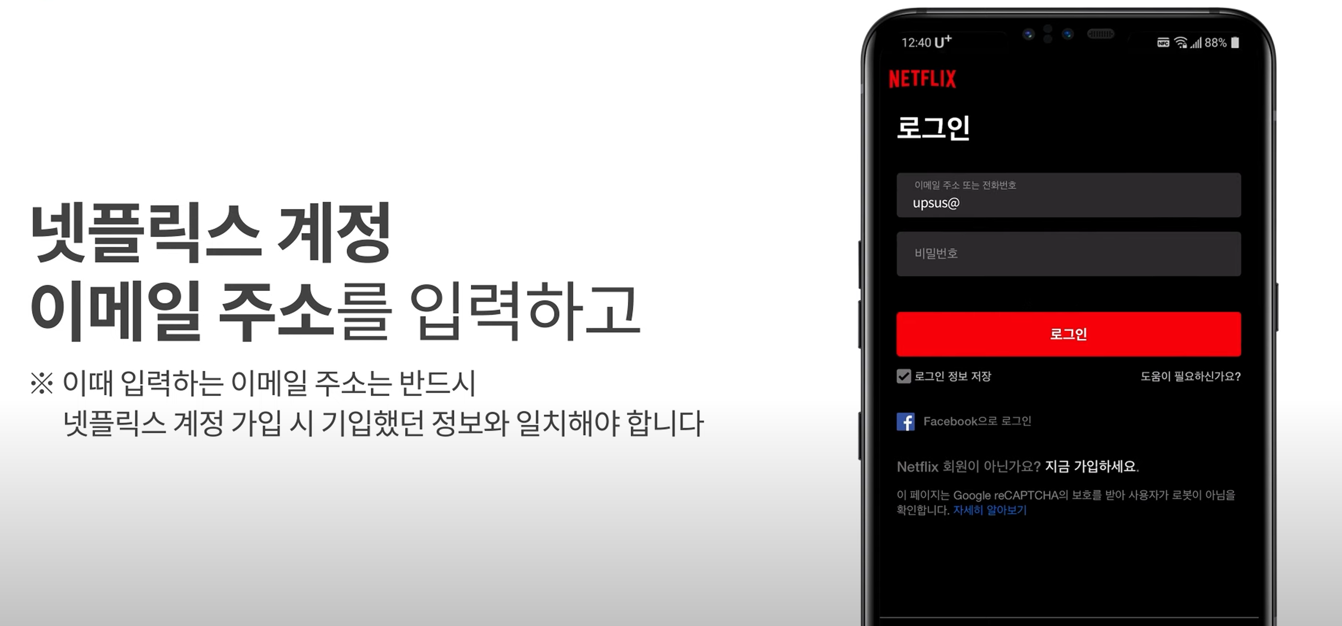 - 계정 로그인: 넷플릭스 계정으로 로그인합니다.